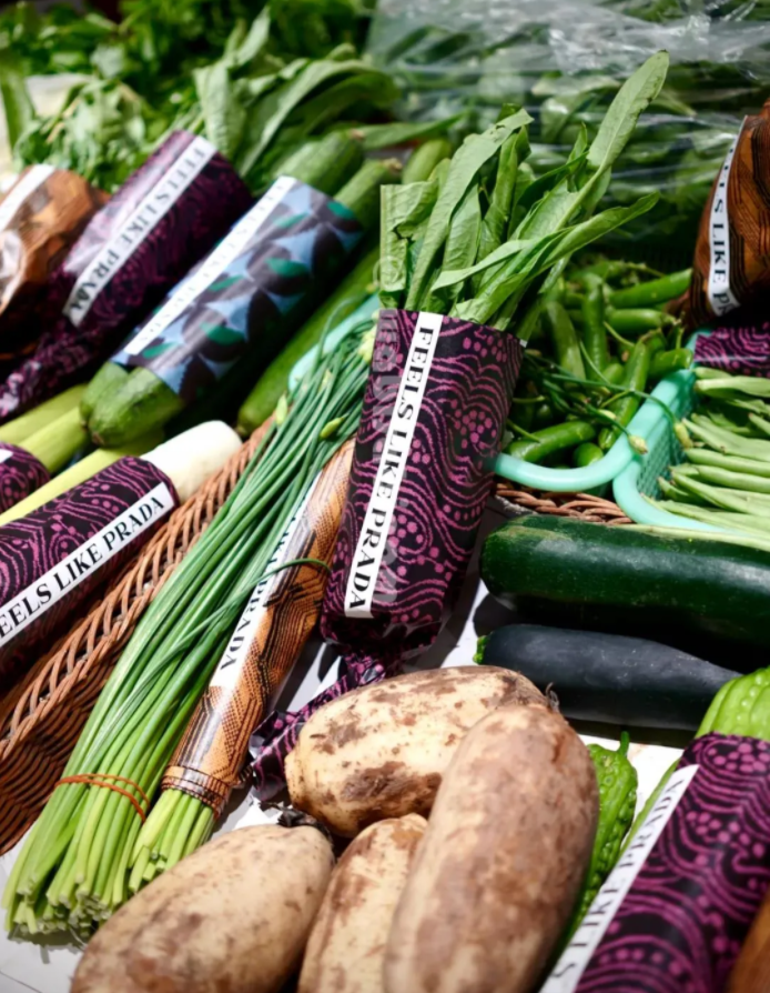 挑好菜后,每样果蔬都会被店家用 Prada 的印花纸细心包好递到你的手中。