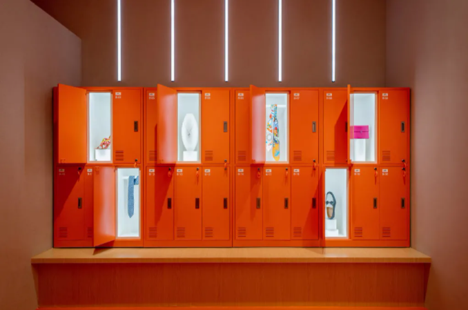 场馆内还有专门的储物柜其中摆设的当然也都是爱马仕的产品。