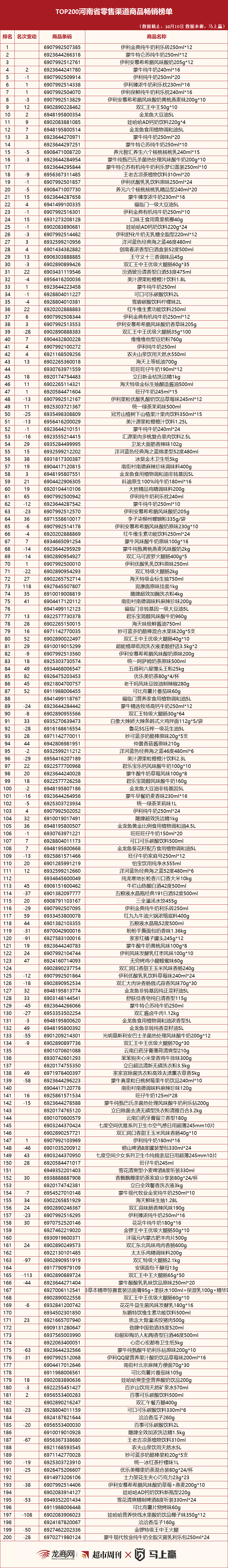 “TOP200河南省零售渠道商品畅销榜单”发布(9月12日版)