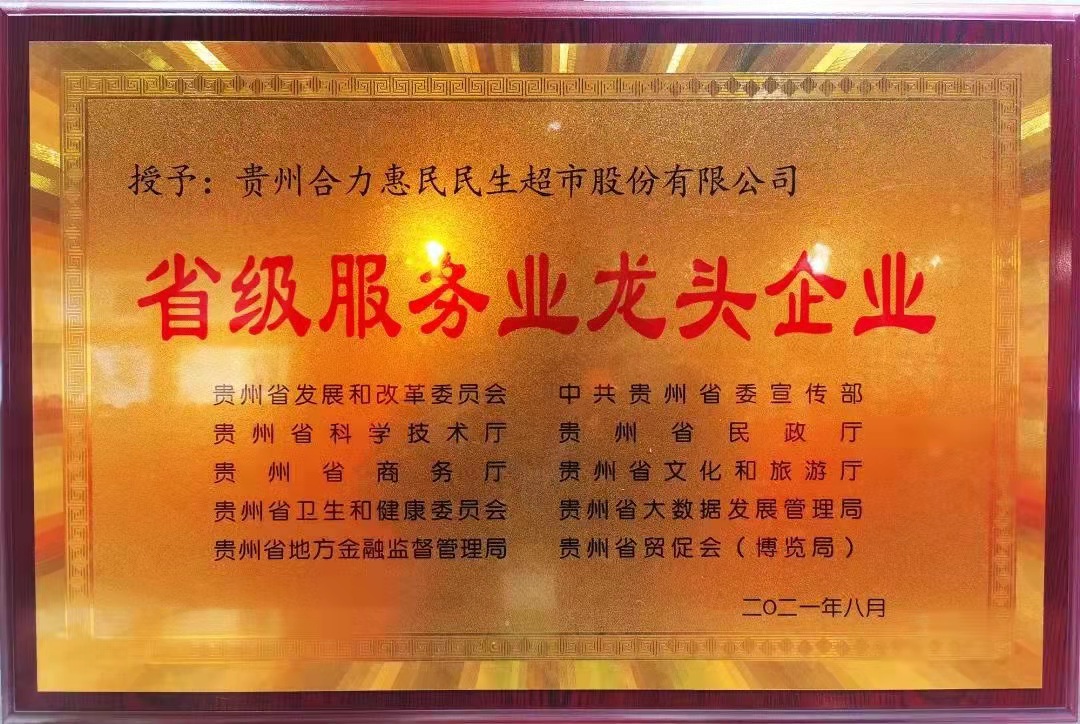 龙商网消息:贵州合力惠民民生超市股份有限公司日前荣获2021年“省级服务业龙头企业”荣誉称号,凭借良好的经营业绩和创新发展力,成为贵州省三家零售业类上榜企业之一。