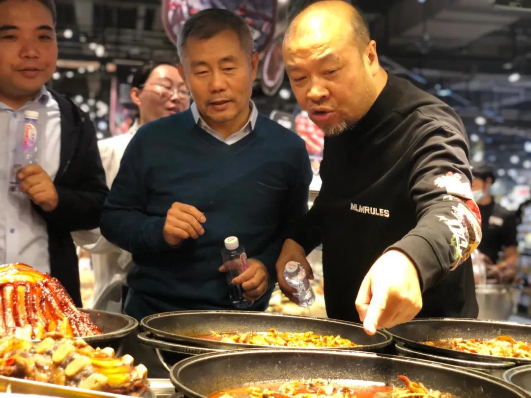 海盗哥陪同裴会长一行参观了雅斯东山旗舰店,并向大家讲述了雅斯的卖场构建。在卖场的生鲜区,裴会长品尝了雅斯自制产品,对现场加工商品给与了高度评价,赞赏雅斯生鲜餐饮化的实践创造。同时,海盗哥讲解了雅斯接下来的发展思路与方向,自疫情以来,雅斯不但没有收缩经营范围,反而不断创新突破、积极满足顾客购物需求及服务需求,用发展来应对日益严峻的市场,引领顾客开启美好新生活。