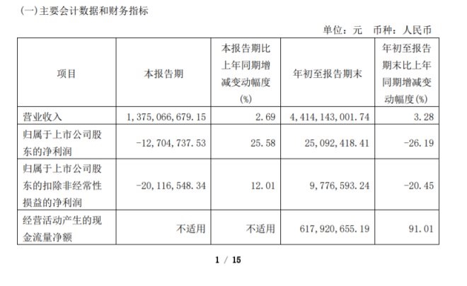 龙商网消息:10月21日,新华百货发布2021年第三季度报告。报告称,今年第三季度,新华百货实现营收13.75亿元,同比增长2.69%;实现亏损1270.47万元,同比增长25.58%。今年前三季度,新华百货实现营收44.14亿元,同比增长3.28%;归属上市公司股东的净利润2509.24万元,同比下降26.19%。新华百货在报告中指出,执行新租赁准则对公司前三季度累计损益的影响情况:年初至报告期末使用权资产折旧费和利息费用较原准则增加费用 7,182.79 万元,合计减少前三季度利润 7,182.79 万元。