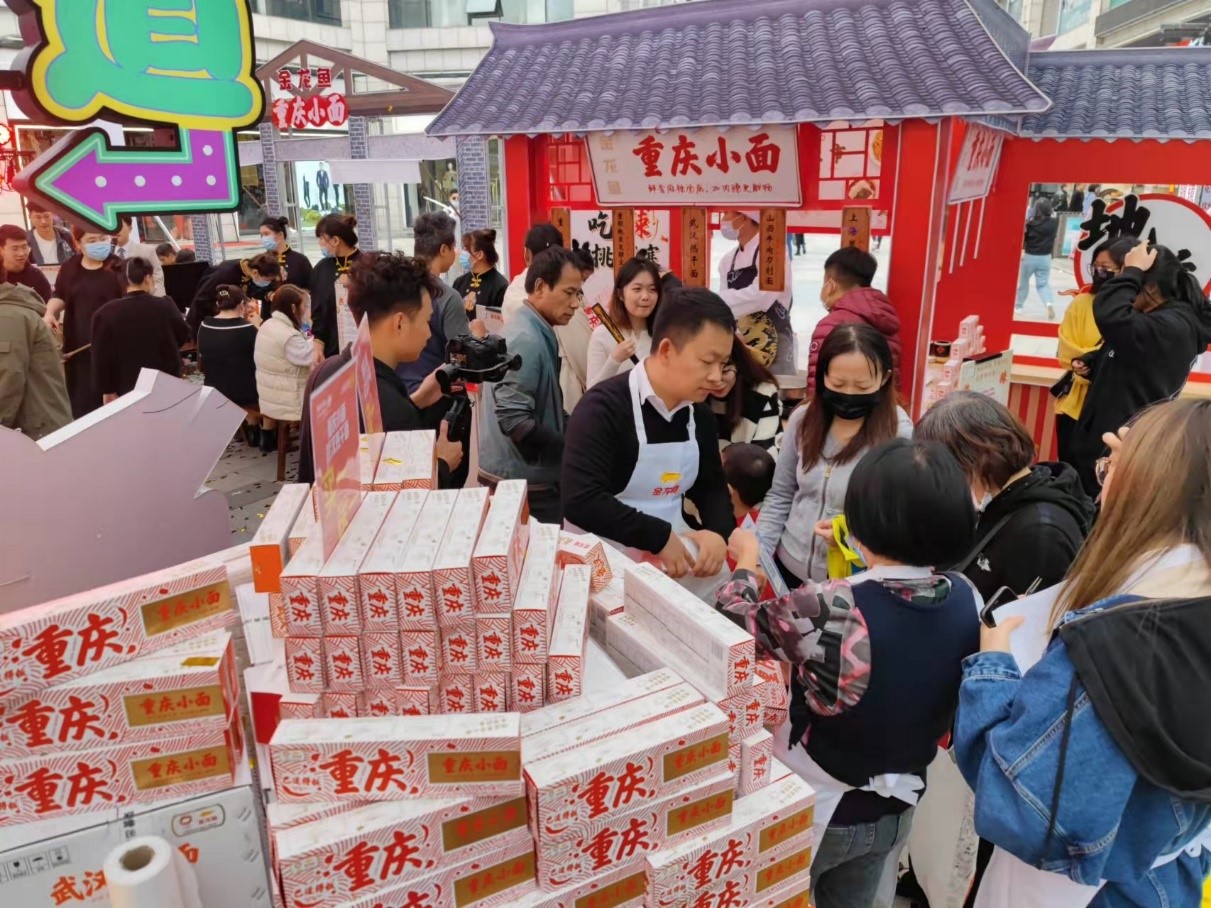 在上海家乐福江桥门店益海嘉里“寻面环游记”的活动现场,顾客周女士表示,“原本只是想来抢购99元组合价的粮油产品,却意外体验了一番重庆风情”。和重庆地标解放碑的模型拍照打卡、品尝地道的重庆小面、功夫茶,还参与了画脸谱活动,周女士觉得“巴适得很”。