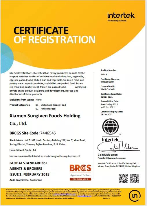 尽管认证品种繁多,但得益于元初从成立之初就一直坚持从高从严坚持产品高标准,坚持努力完善食品安全各个管控环节,经过10年的沉淀,在全体伙伴的努力下,在几个月内成功获得了BRCGS A级证书。