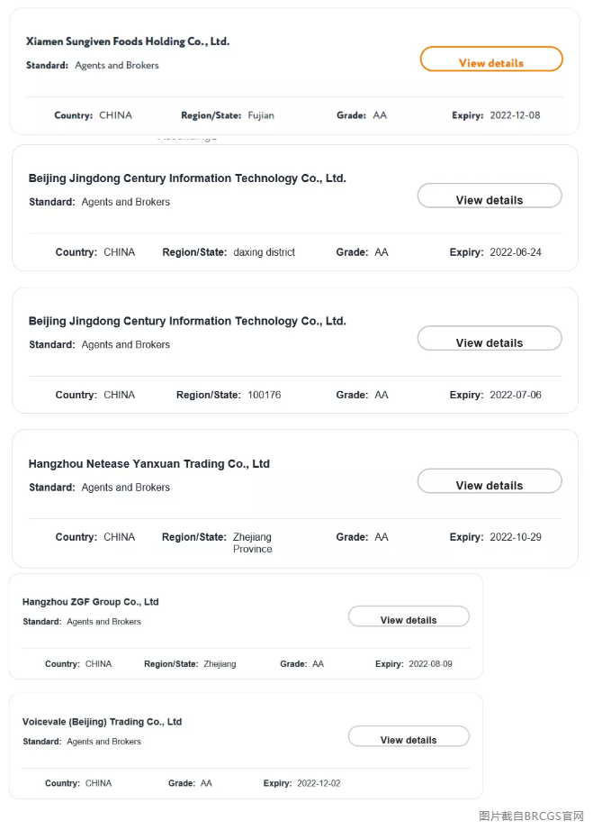 目前国内6家BRCGS双A认证企业名单: