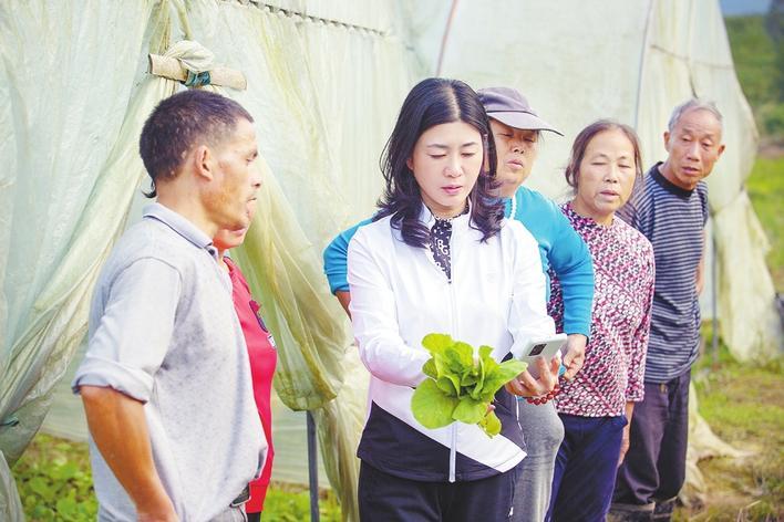 李小红在怀化鹤城区石门乡调研蔬菜种植,充分发挥企业对接市场优势,把种植技术和市场信息送到农民的田间地头。