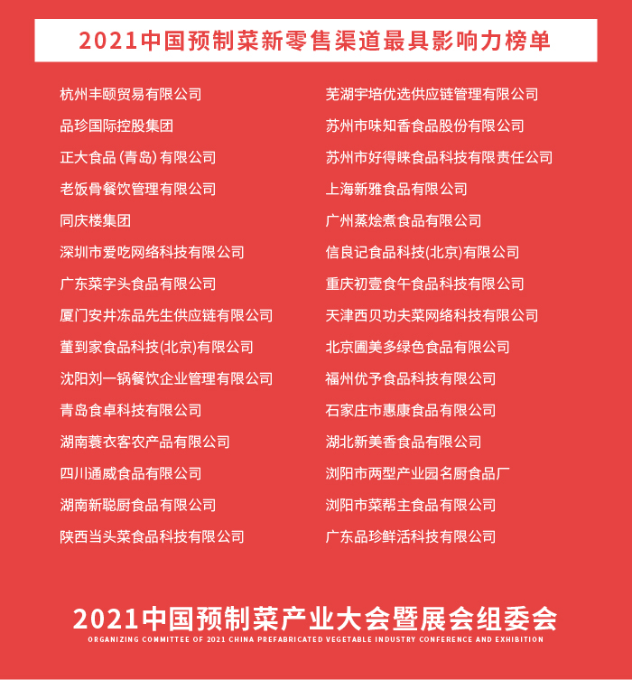 以下为大会暨展会组委会联合思尔福预制菜发布的“2021中国预制菜产业创新榜单”。