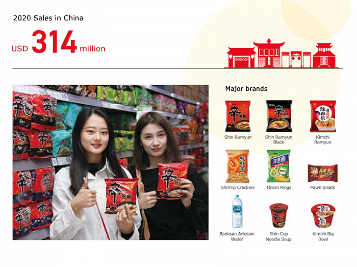 韩国三大方便面企业农心、不倒翁、三养都早早进入了中国市场,其中最大的农心早在1996年便与一家中国台湾公司在上海建立合资企业,1998年开始独立经营,不久后还在青岛、沈阳建立了工厂。