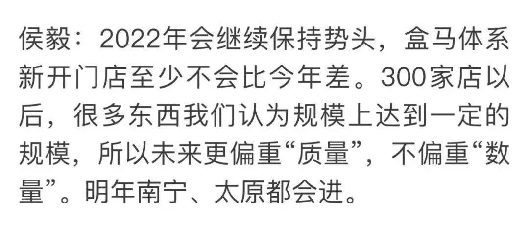 据“太原看点”微信公众号消息,盒马CEO侯毅在2021年年底专访中透露,将在2022年进入南宁和太原两座城市。