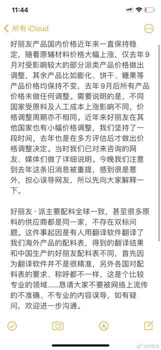 龙商网消息:近日,有网友爆料称,好丽友仅对中国等市场实行涨价,以应对原材料上涨。对此,好丽友官方微博回应称,好丽友产品国内价格近年来一直保持稳定,随着原材料价格大幅上涨,仅去年9月对受影响较大的部分派类产品价格做出调整,其余产品比如膨化、饼干、糖果等产品价格均保持不变。且不同国家受原料及人工成本上涨影响不同,价格调整周期亦不相同。此外,针对配料“双标”争议,好丽友表示,好丽友·派主要配料全球一致,争议系翻译软件翻译海外产品配料表时表述不准导致。