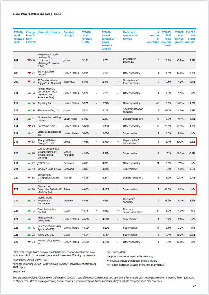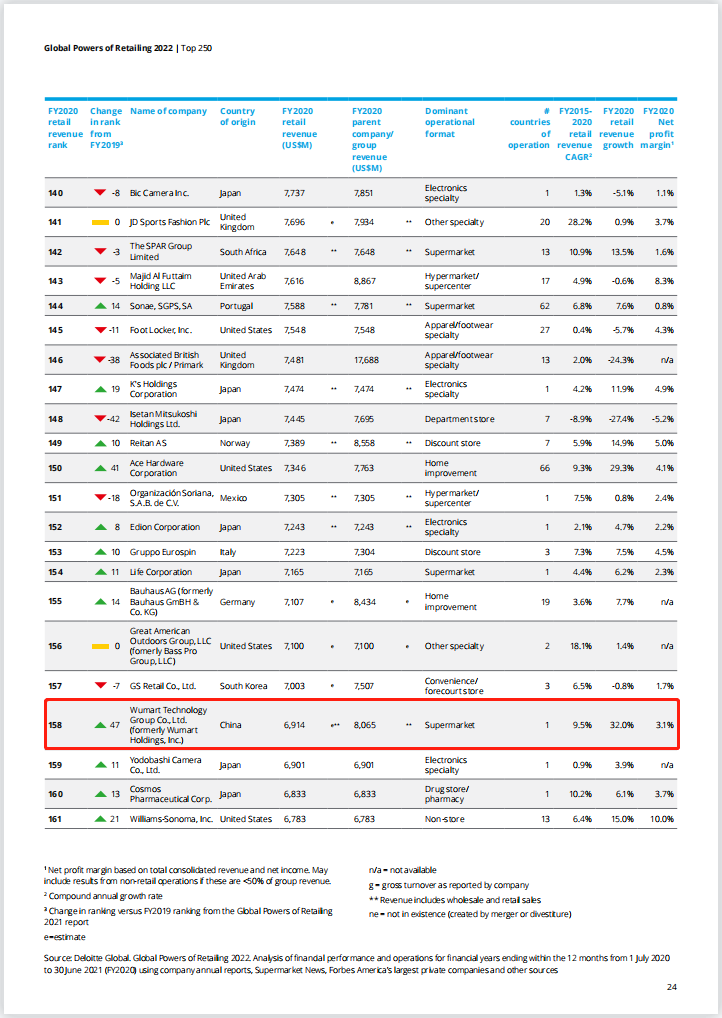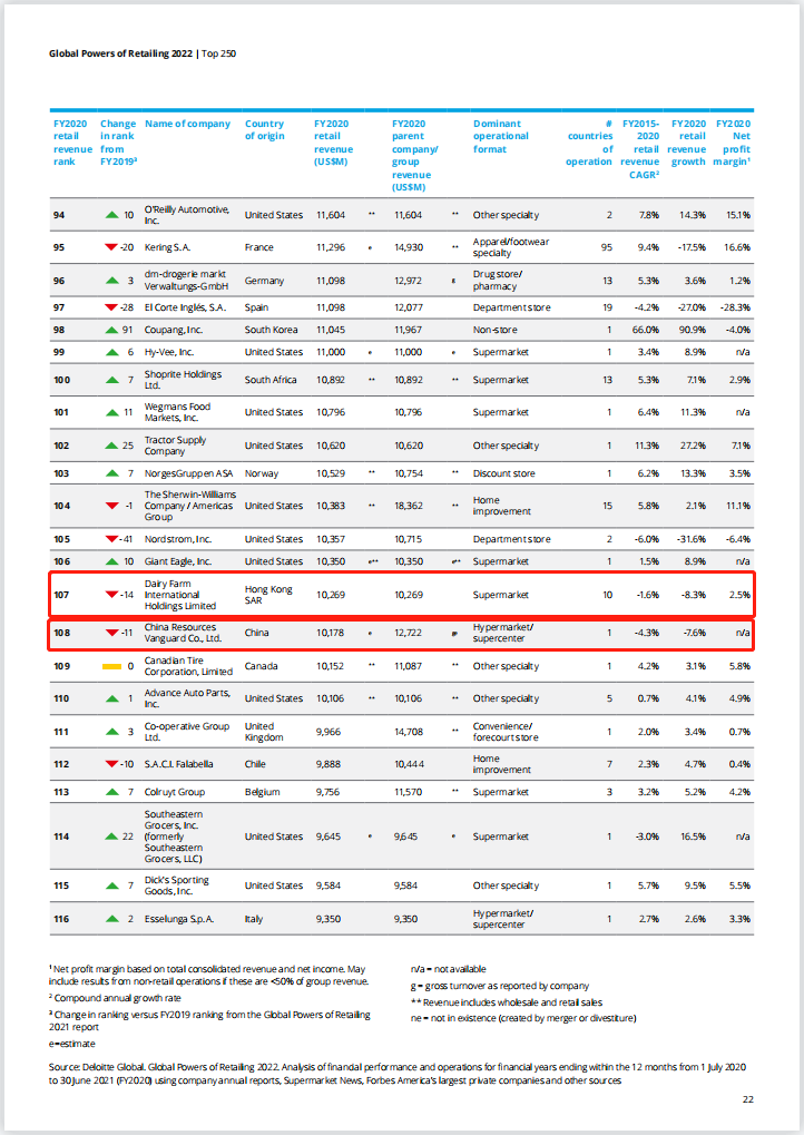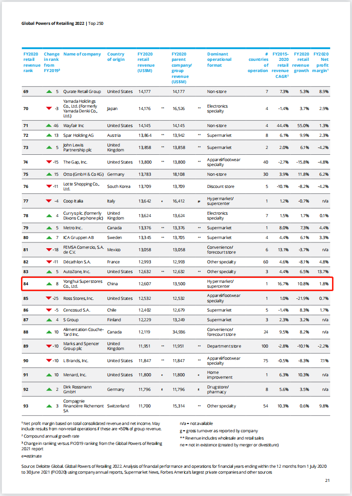 2022全球零售250强名单出炉:14家中企上榜,永辉超市跻身百强