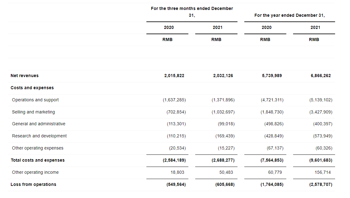 龙商网消息:达达集团发布截至2021年12月31日未经审计的2021财年第四季度和全年业绩。财报显示,2021年第四季度总营收为20.32亿元,可比口径下同比增长80%;净亏损5.78亿元,而2020年同期为5.34亿元。2021年总营收为68.66亿元,可比口径下同比增长78%;净亏损为24.71亿元,而2020财年为17.05亿元。