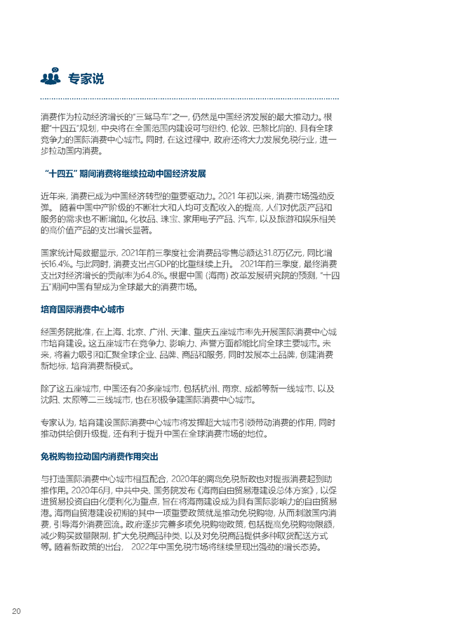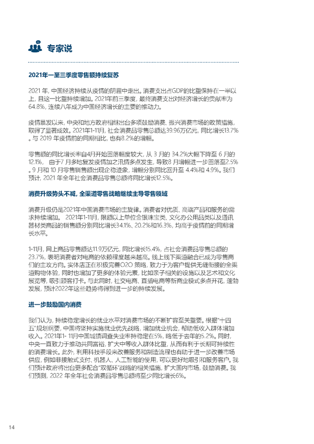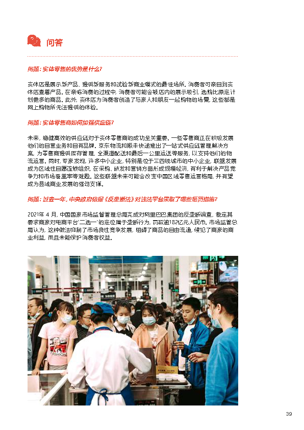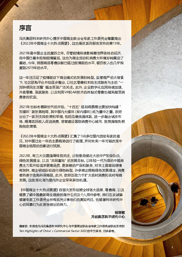 龙商网消息:日前,由中国商业联合会主办、香港冯氏集团利丰研究中心支持的“2022年中国商业十大热点展望报告”在北京发布。报告从共同富裕、现代化流通体系建设、绿色商业、国潮崛起、城乡双向循环、创新业态、一刻钟生活圈、供应链整合、数字化建设等十个角度全面阐述了我国2022年商贸流通领域的热点趋势。