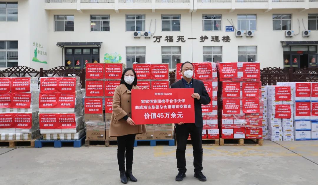 自成立以来,家家悦集团以“做居民的好邻居、当家庭的好帮手”为经营理念,在努力推动企业发展的同时,秉承“社会责任创造价值”的宗旨,积极参与慈善活动,履行社会责任。2020年新冠肺炎疫情爆发后,家家悦集团第一时间向威海市慈善总会捐款800万元,助力疫情防控。