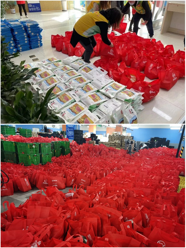 永辉相关负责人透露,3月22日,永辉接到政府套餐预约4000单,门店立即组织了30多名员工,进行流水线打包套餐的工作,分装蔬菜水果、鸡蛋、肉类,在最短的时间内打包装箱。