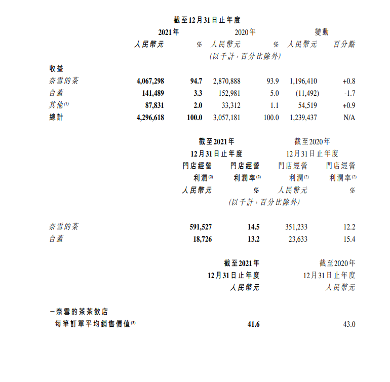 龙商网消息: 奈雪的茶发布2021年业绩公告。财报显示,2021年奈雪的茶总收入为42.96亿元人民币,同比增长40.5;其中,奈雪的茶线上订单收入占比高达71.8%。2021年奈雪的茶新增门店数326家,门店经营利润达5.92亿元人民币,同比增长68.4%;门店利润率为14.5%...