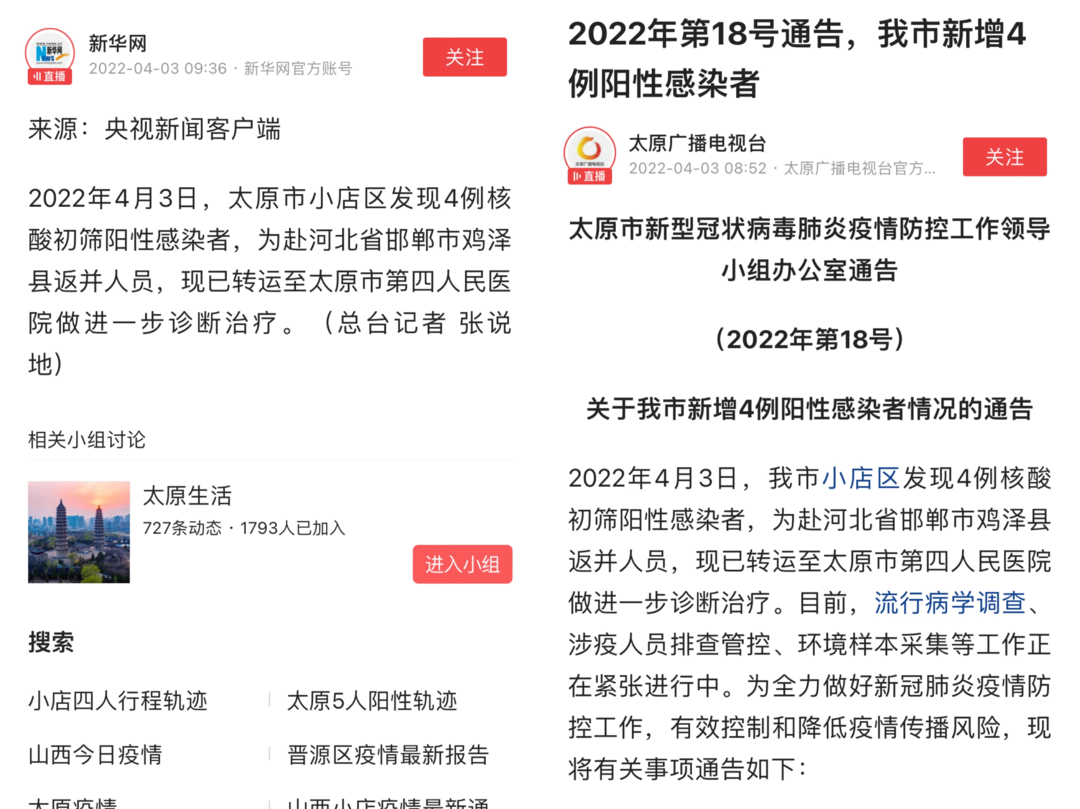 2022年4月3日,当所有太原市人民都还在享受清明节假日第一天的清闲时刻,一条“太原市小店区新增4例阳性感染者”的消息,打破了节假日的平静......
