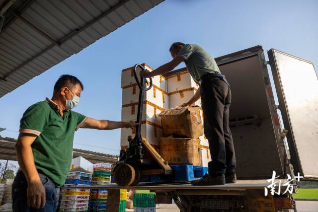 包装是一项费时的活,完成包装已是下午3时,随即开始装车。下午4时左右,一车约4000斤的蔬菜便从包装中心发车,送往位于广州市黄埔区鹿步大路119号华润万家(控股)有限公司(以下简称“华润万家”)广州生鲜配送中心。“我们每天都有多辆车发往各地,包括广州、深圳的知名商超和医院、学校等,今天晚上还有一车会送到位于广州番禺的朴朴超市总仓。”陈立敬说。