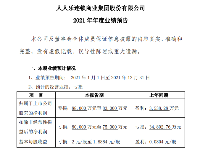人人乐发布2021年业绩,净亏损8.57亿元,同比由盈转亏