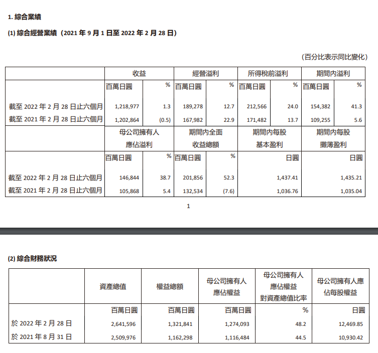龙商网消息:日前,优衣库母公司讯销集团公告称,截至2022年2月28日止6个月,公司综合收益总额12189亿日元,同比增长1.3%,综合经营溢利总额1892亿日元,同比增长12.7%。业绩增长主要是由于东南亚、南亚及大洋洲地区、北美及欧洲地区的优衣库业绩表现强劲,业务进一步扩大所致。日本及大中华地区的优衣库业务及极优业务则录得收益及溢利双双下降。公司将向联交所申请4月19日上午九时正起恢复买卖香港预托证券。