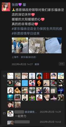 (图:家乐福徐泾店店长张微的朋友圈 正能量满满)