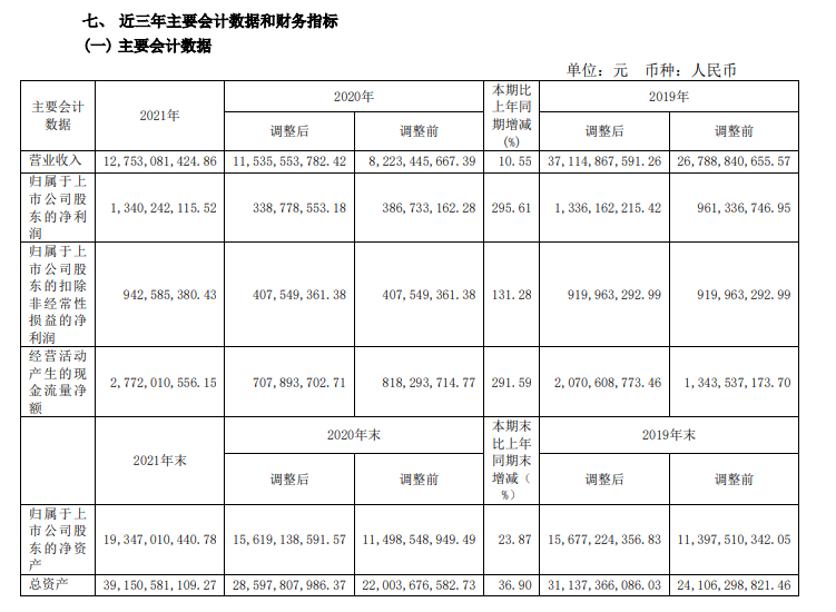 龙商网消息: 王府井披露2021年年报,2021年营收127.53亿元,同比增长10.55%;归母净利润13.4亿元,同比增长295.61%。