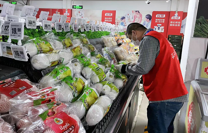 海南的圣女果、山东的茄子、河北的萝卜……店里销售的蔬菜、水果、肉品等生鲜商品都是原产地直采,这为超市能够及时补给提供了保障。张传涛说,今天店里蔬菜供应量达到15吨,比昨天增加20%,米面粮油供应量比昨天增加了两倍,同时商品价格保持不变。