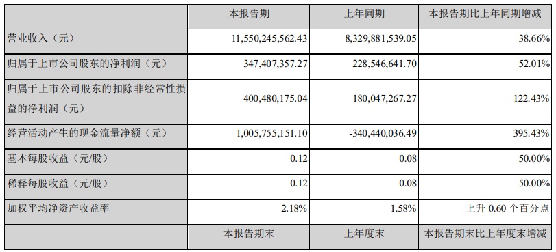 韵达股份:上半年实现净利润4.46亿元,同比下降34.45%