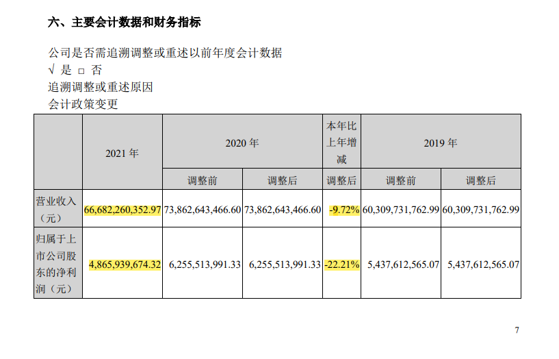 3月底,双汇交出了2021年成绩单,这是双汇上市后业绩降幅最大的一份年报。年报显示,报告期内,该公司实现营业收入为666.82亿元,同比下降9.72%;归属于上市公司股东的净利润为48.66亿元,同比下降22.21%。