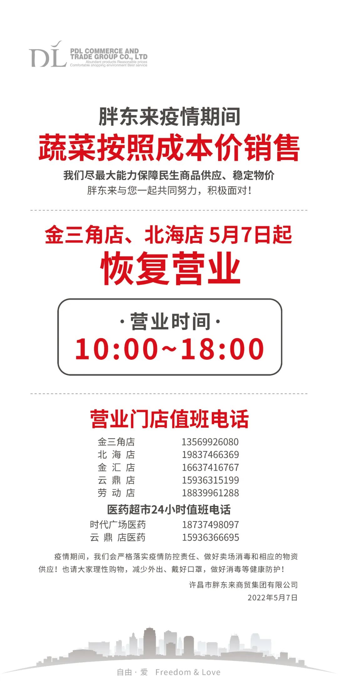 胖东来配合防疫发布营业时间调整公告