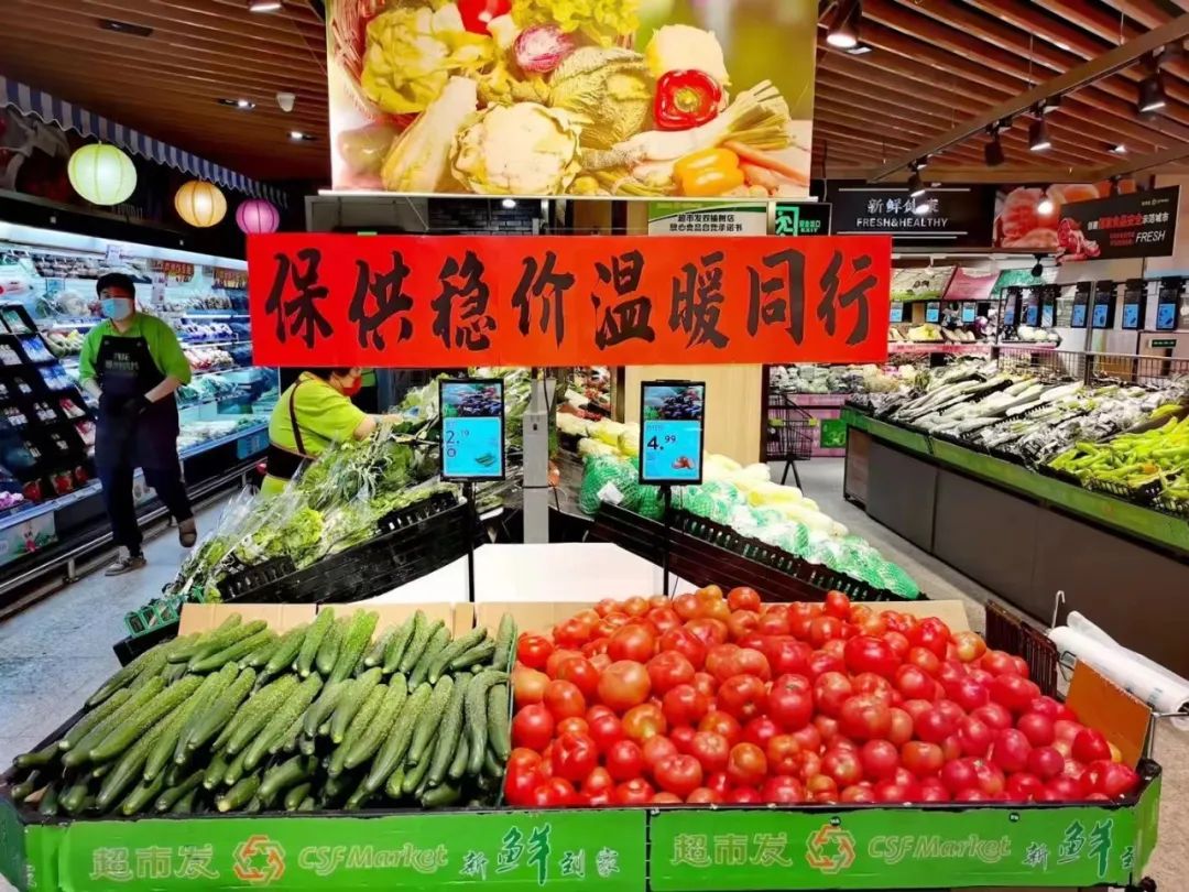 4月24日晚,线上订单开始增加,为保障百姓菜篮子、米袋子供应充足,超市发紧急连夜调配货源,蔬菜水果、米面粮油等重点民生商品按平时3倍以上的货量供应。考虑到百姓购物需求增加,从4月25日起,超市发门店每天早上提前半小时营业,同时延长营业时间,晚上直到顾客离开后自然闭店。