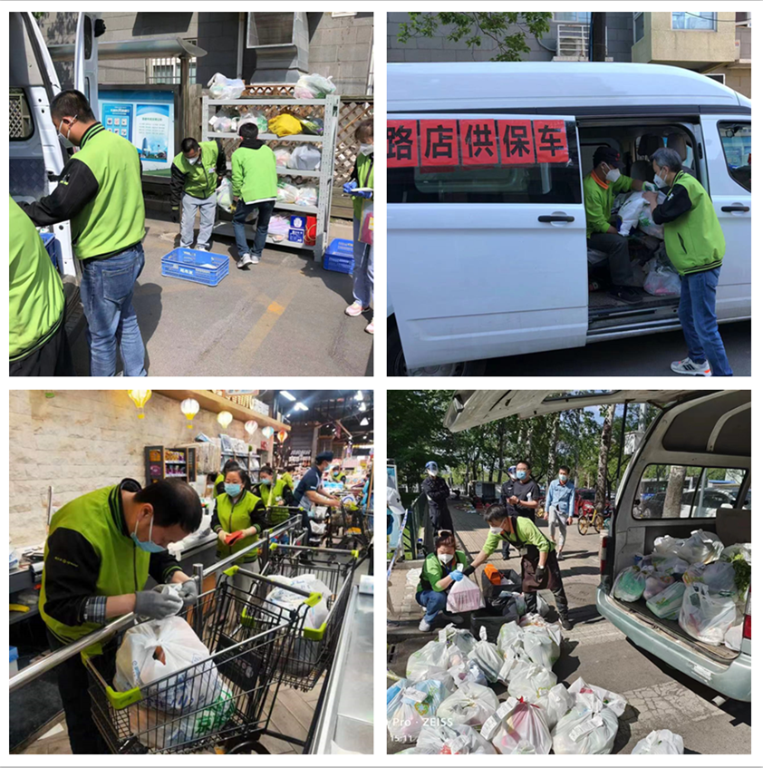 抗疫保供的第一线,始终有着超市发人的影子,从未退后。4月29日晚,超市发双榆树店、万泉庄店、魏公村店、学院路店、玲珑路店、甘家口店六家门店,承担起甘家口街道封控管控区区域内12个社区生活必需品的供应工作。通过线上下单线下配送的方式,将“菜篮子”拎进封控管控区,“保供专车”开到管控区,全力保障社区居民的生活必需品供应,全力支援守护封控管控区万家灯火。