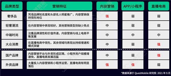 针对国内市场,将鞋服行业按照内资、外资以及品牌定位来进行分析,我们会发现:相对而言,外资和奢侈品在打造品牌力、传递品牌价值和内容运营上做得更多,内资和大众消费在直播电商领域领先于外资。