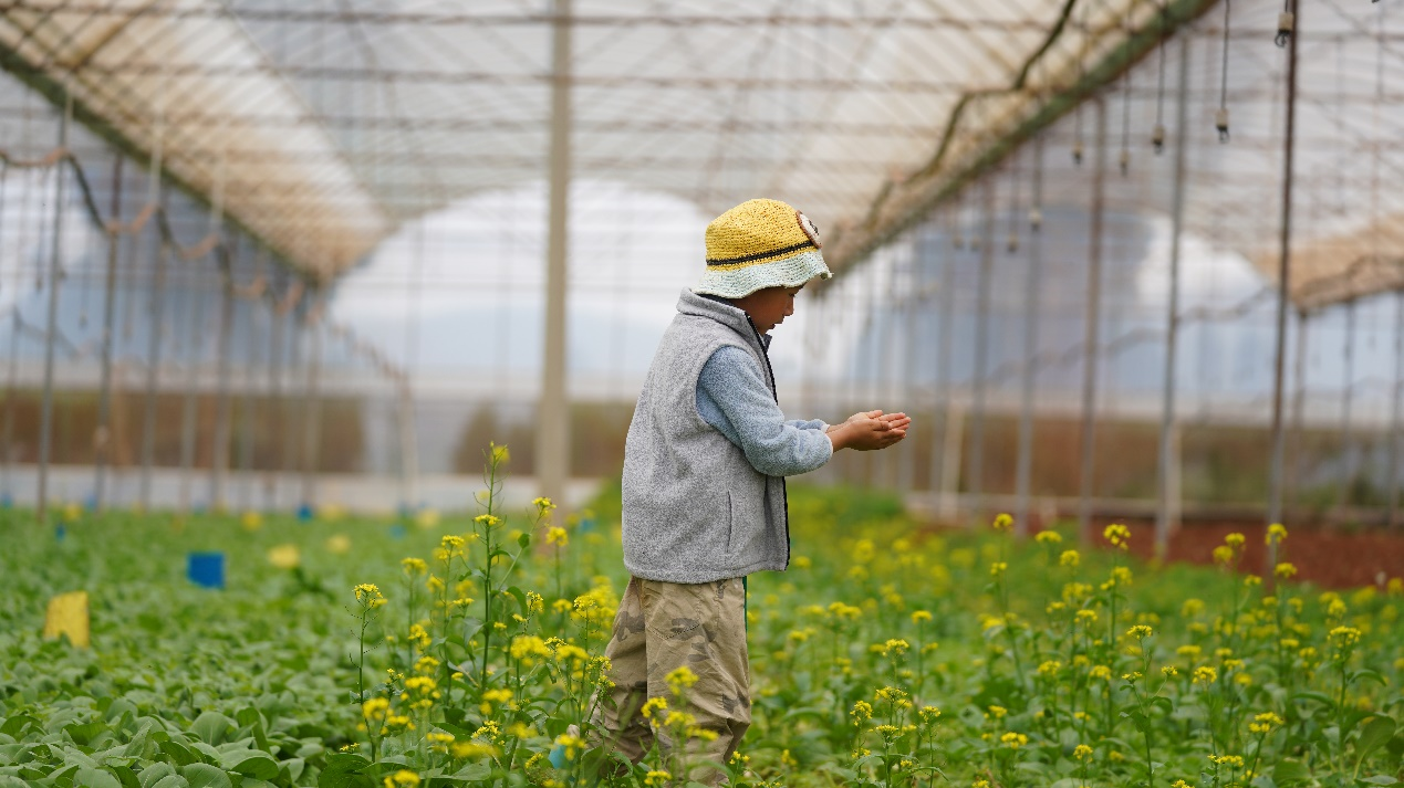 (图:当地小朋友在基地大棚玩耍)