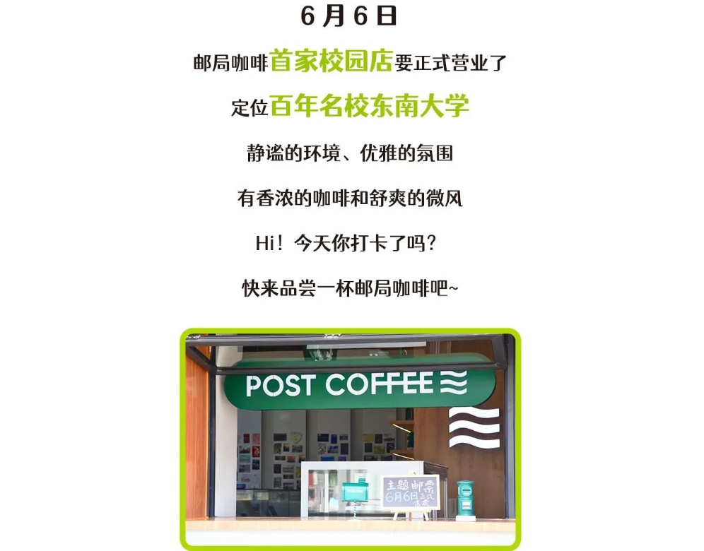 据邮局咖啡微信公众号消息,邮局咖啡首家校园店今日在东南大学正式营业,营业时间为7:30-20:30,地址为南京市江宁区东南大学路2号(东南大学邮局内)。据悉,该店除了推出融合中国邮政与东南大学元素的邮票杯贴,还将推出茶饮和甜点。 资料显示,邮局咖啡微...