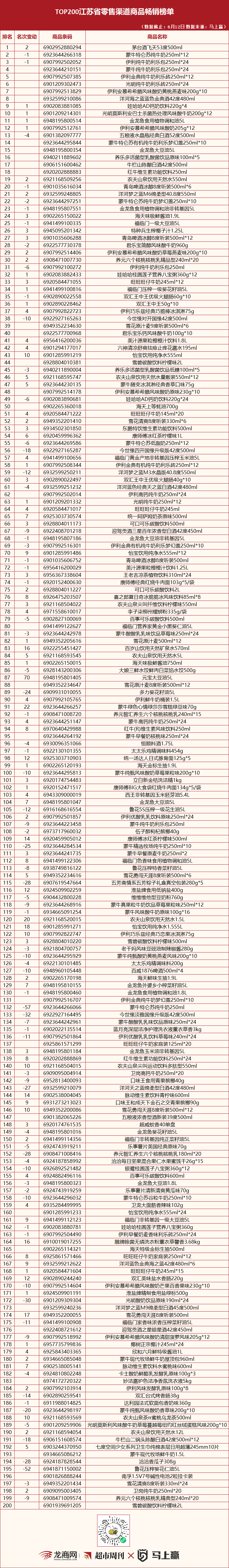 “TOP200河南、江苏省零售渠道商品畅销榜单”发布(3月28日版)
