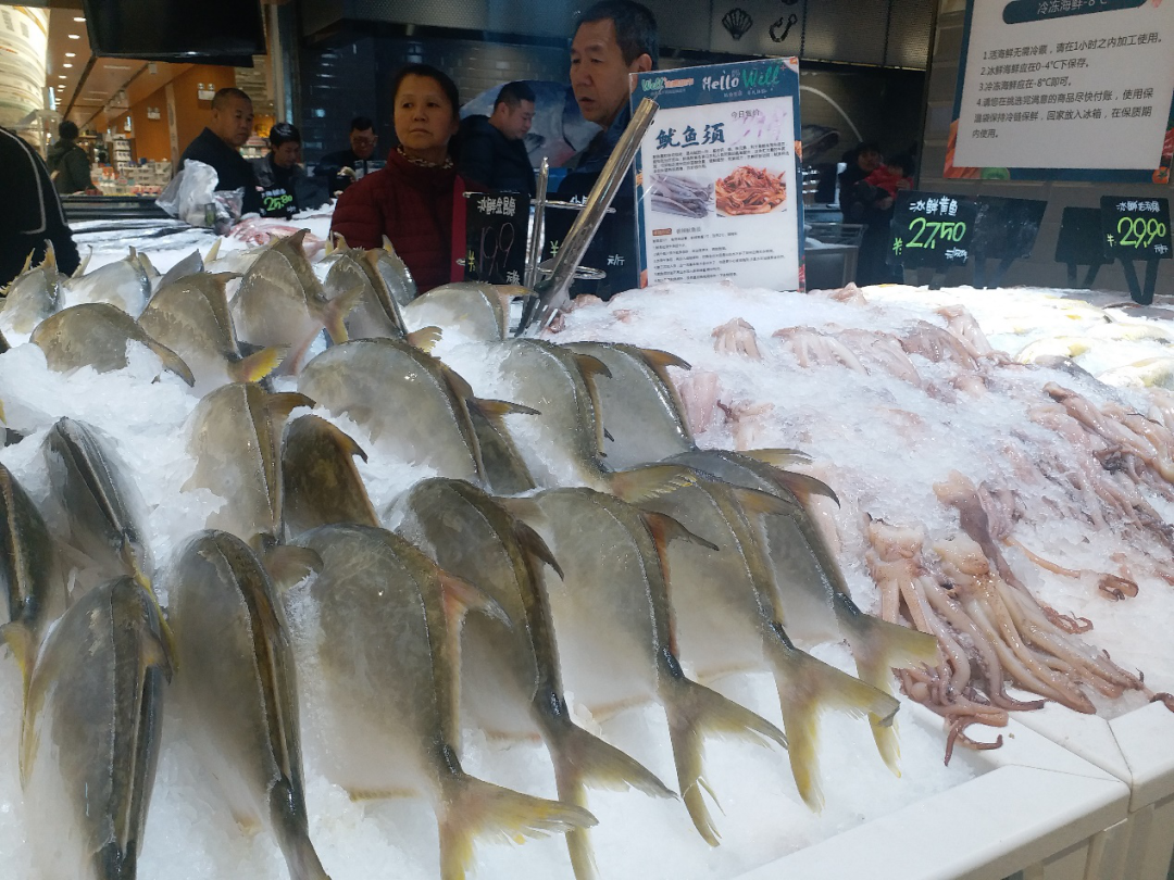 活鱼、活虾、活蟹等水产品要以无色的玻璃水箱陈列,但对水温和水质都有专业的要求,销售占比明显高于冰鲜产品。