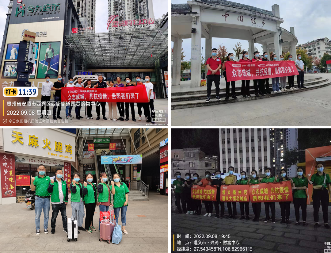 9月8日,贵州合力安顺国贸店、平坝中润国际店、遵义世贸城店、遵义思乐为置业广场店、遵义日月星城店、遵义播州店、遵义大恒名城店、遵义幸福城店、遵义圣城华府店、遵义大都汇店、绥阳店各门店迅速组织精干力量,“疫”无反顾,驰援贵阳,竭尽全力支援贵阳保供稳价工作。
