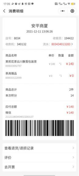 顾客电子会员内可实时查询消费记录,有退换货等需求时便捷出示电子小票。
