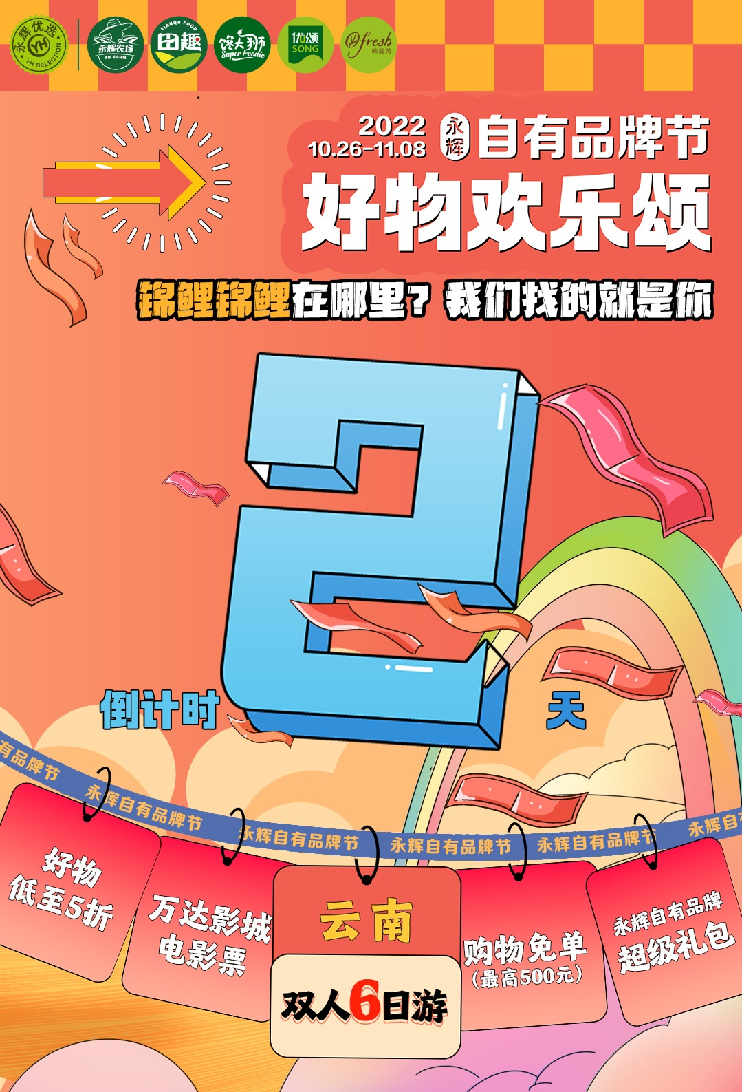 龙商网消息:随着零售行业变革迭代速度不断加快,打造节庆活动已成为零售商谋求破局、强化品牌竞争力的关键手段。据悉,永辉自有品牌节将于10月26日正式启动,以“好物欢乐颂”为主题,融合线下及线上渠道、通过年度TOP10好物特价购、爆品直降、晒单赢免单、消费抽云南双人6天旅游大奖等多种福利活动,激发消费者的购物热情。