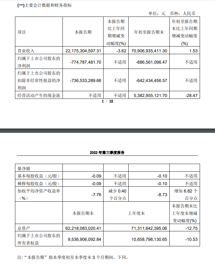 龙商网消息:10月29日,永辉超市发布2022年第三季度报告显示,前三季度营业收入达709.07亿元,同比增长1.53%,综合毛利率达19.94%,同比增加1.19%。在利润方面,尽管一定程度上受到了公司持有的金融资产公允价值持续下跌的影响,但永辉超市前三个季度的亏损幅度较去年同期大幅收窄,归母净利润、扣非后归母净利润分别减亏达12.91亿元和11.86亿元,同比减亏达59.29%、64.86%。与此同时,永辉超市销售费用同比下降3.23%,管理费用同比下降10.14%。截至2022年9月末,永辉超市存货较2022年初减少24.91%,存货周转效率和资金使用效率不断提升。