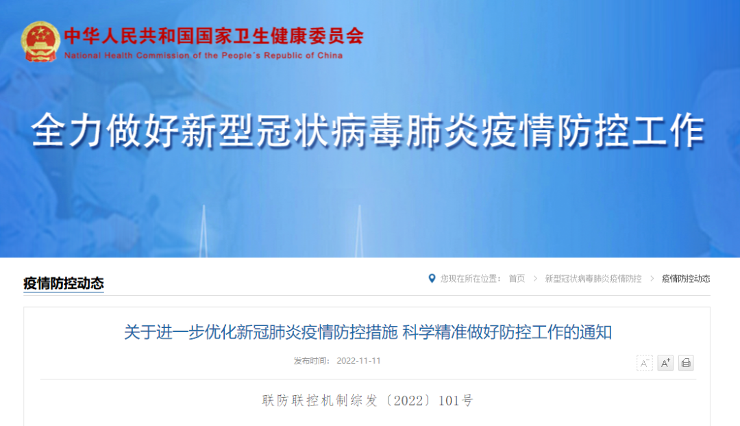 以下为《关于进一步优化新冠肺炎疫情防控措施 科学精准做好防控工作的通知》原文: