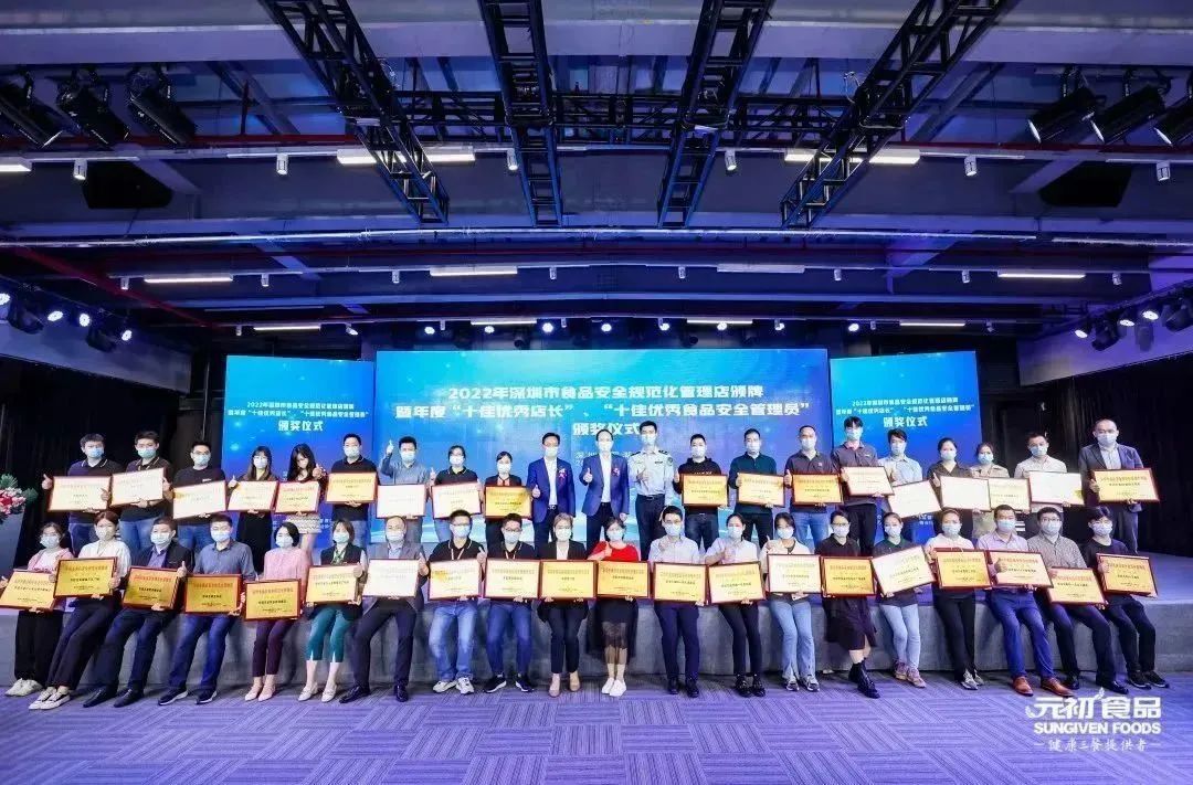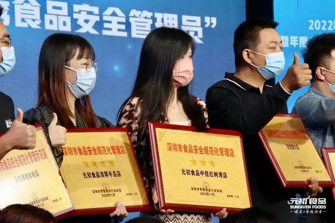 在本次深圳市食品安全规范化管理店的颁牌仪式中,元初食品通过层层严格评选,最终有2家门店(浪琴半岛店、中信红树湾店)荣获“2022年深圳市食品安全规范化管理店”称号。