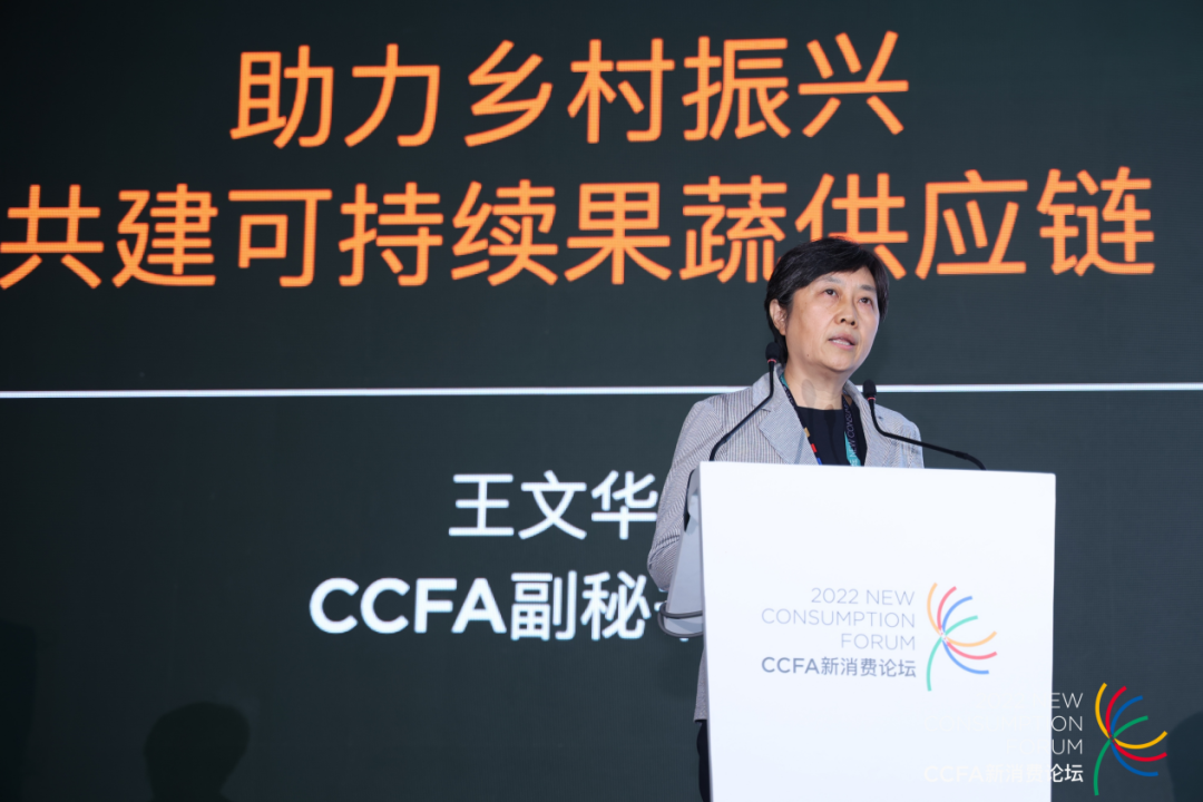 论坛上,中国连锁经营协会副秘书长王文华向与会者分享了协会在推动行业助力乡村振兴,共建可持续果蔬供应链方面的工作。