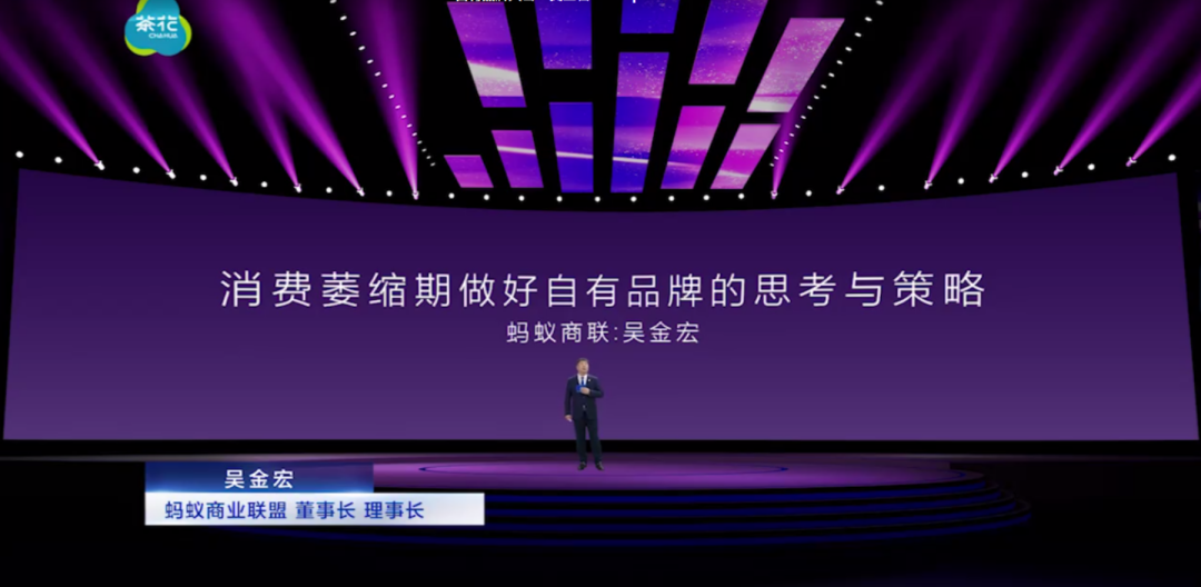 会议开始,蚂蚁商联董事长、理事长吴金宏先生作了主题演讲——《消费萎缩期做好自有品牌的思考和策略》。