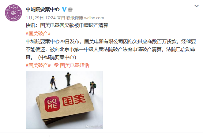 国美严正声明:公司未收悉被申请破产法律文书或问询谈话