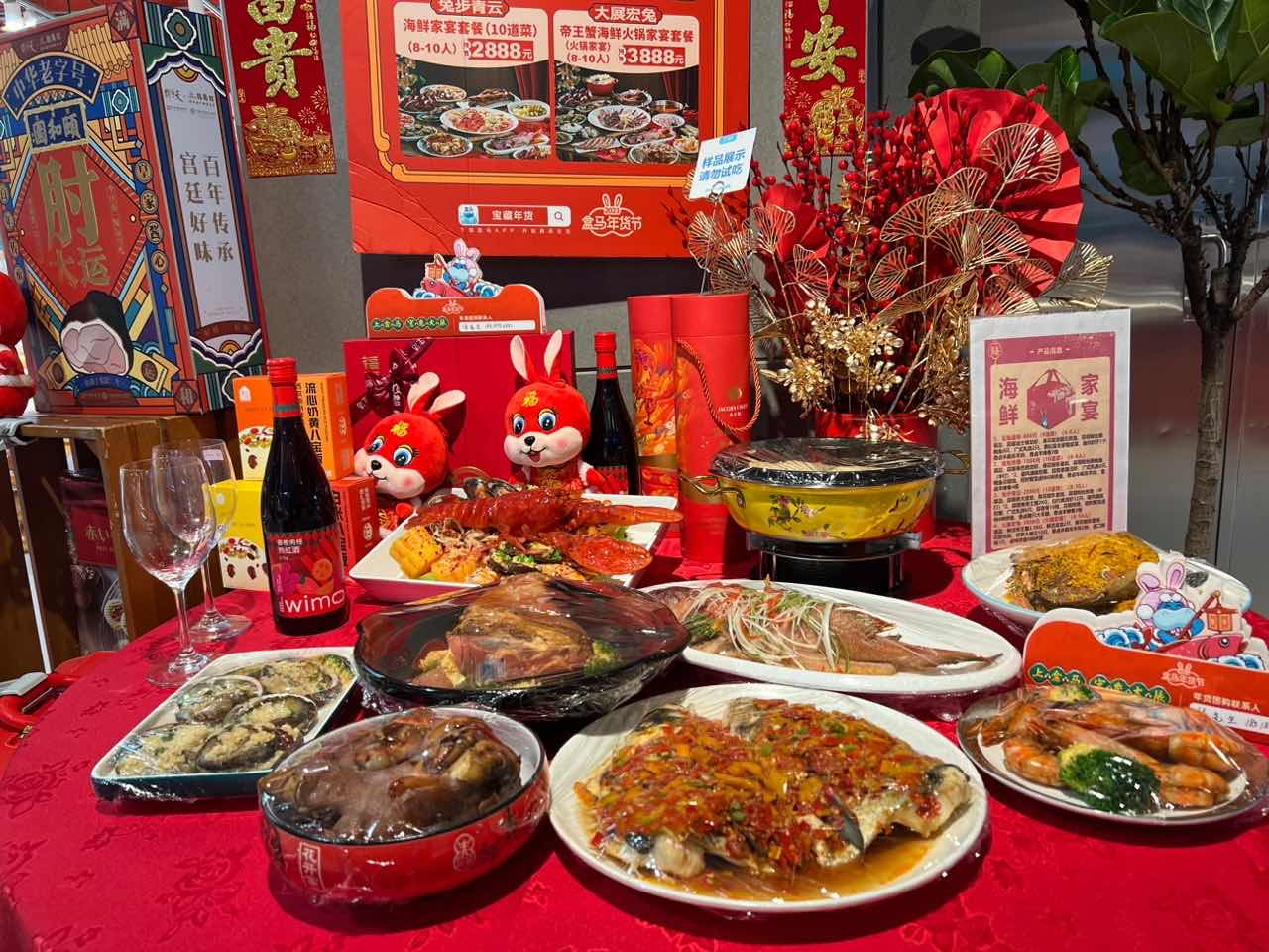 剁椒鱼头酱肘子,海鲜家宴,盒马年饭预定量相比往年增幅明显