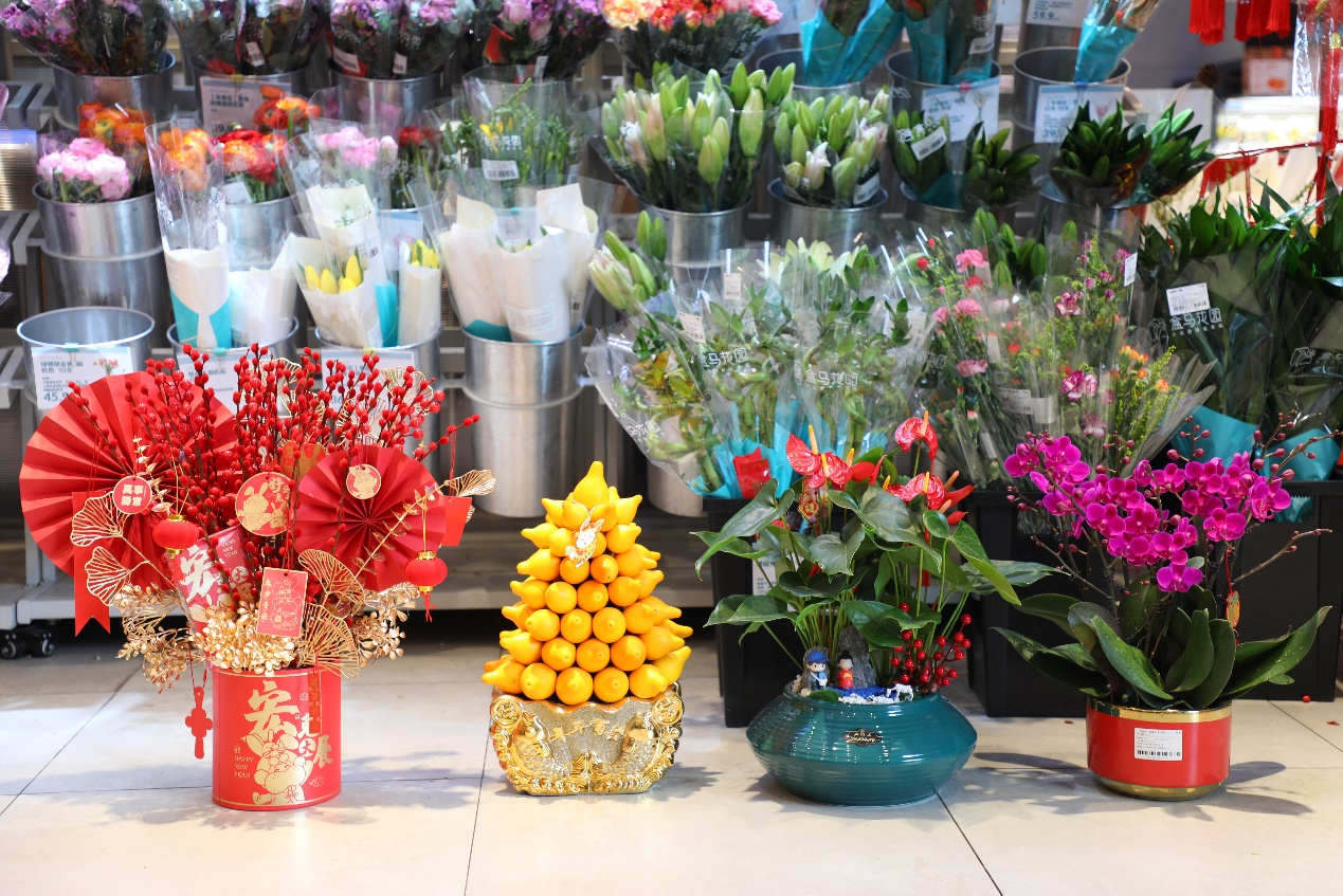 在广州,盒马和广州市花卉研究中心合作,该中心近年来研发培育出的全新品种:福瑞、福星红掌,今年也加入了盒马年宵花的行列。盒马直接和“广花”达成协议,采用基地直供形式,保证红掌的新鲜度和品质稳定,价格方面也更加具有优势。让科研产品走出实验室来到盒区居民的家里,为老广的春节添彩。