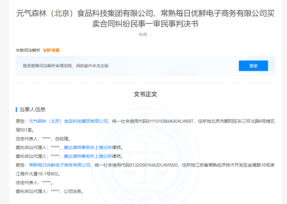 龙商网消息: 2月13日,天眼查App显示,近日,元气森林(北京)食品科技集团有限公司、常熟每日优鲜电子商务有限公司买卖合同纠纷民事一审法律文书公开。文书显示,原告元气森林公司诉称,原、被告双方签订了2022年《商品采购框架合同》,但被告拖欠原告货款...