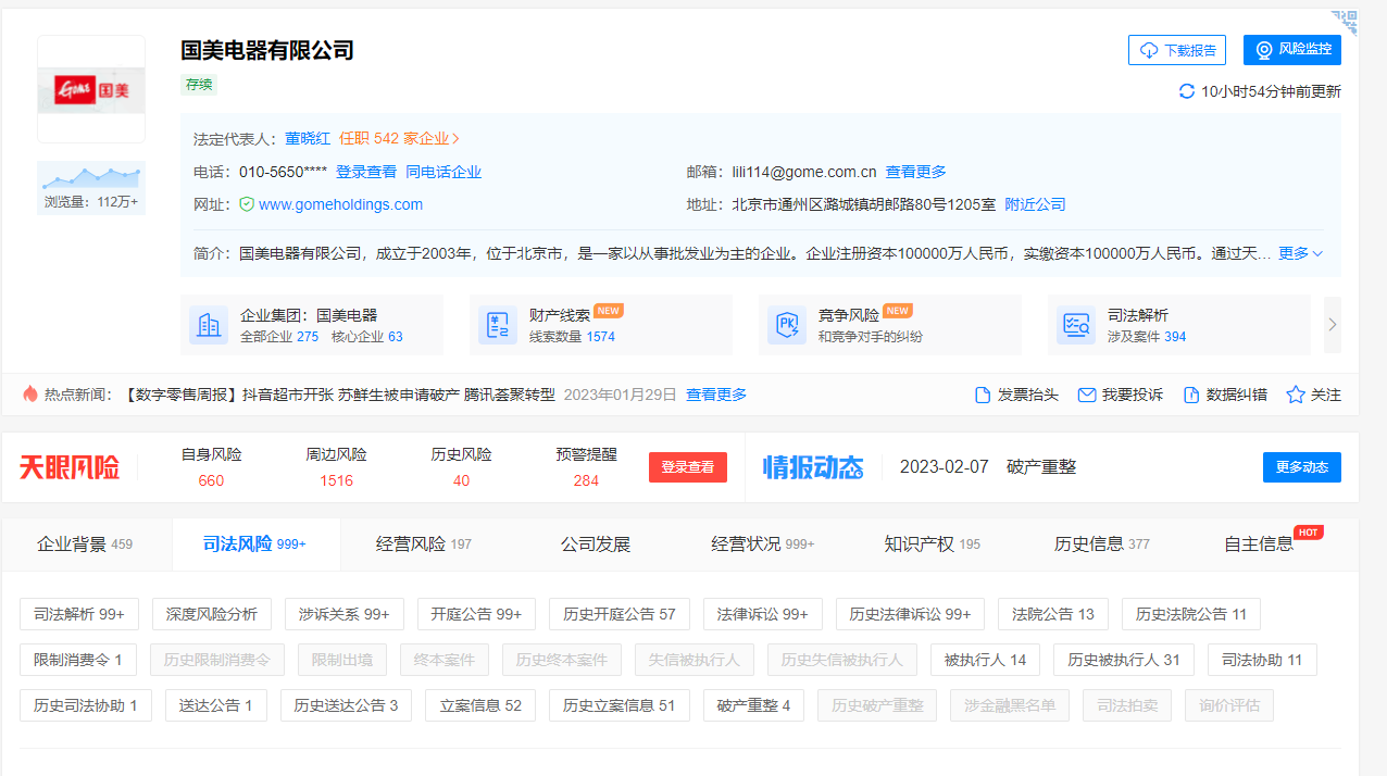 龙商网消息: 2月13日消息,天眼查App显示,近日,国美电器有限公司新增一则股权冻结信息,股权被执行的企业为北京国美咨询有限公司,冻结股权数额500万人民币,冻结期限自2023年2月6日至2026年2月5日。目前,国美电器有限公司存在多个股权冻结信息以及被执...